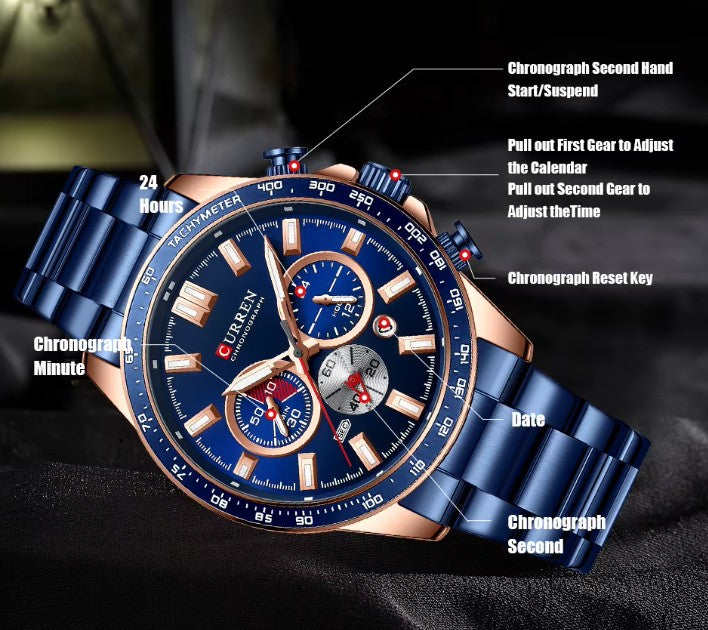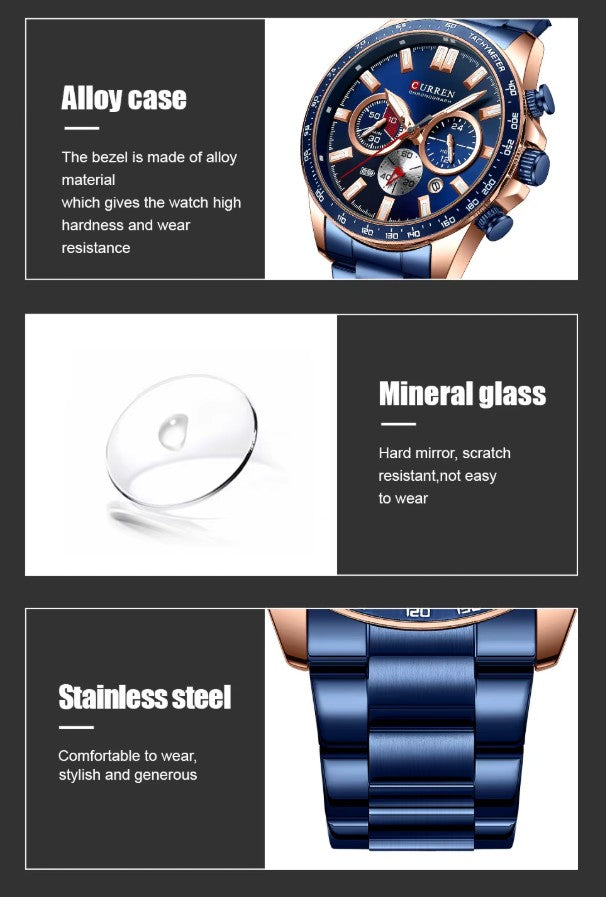 Reloj Hombre CURREN CLASH Cuarzo Acero Inoxidable Cristal Mineral ORIGINAL