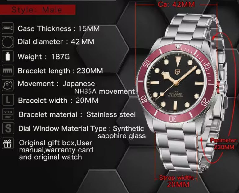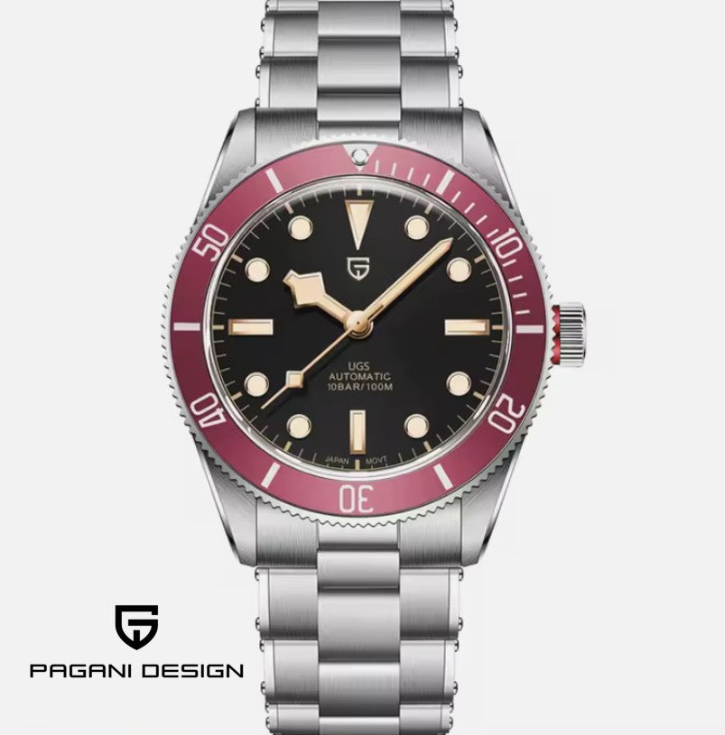 Reloj Hombre PAGANI "BLACK BAY 58 " Black/Red Automático-Cristal de Zafiro
